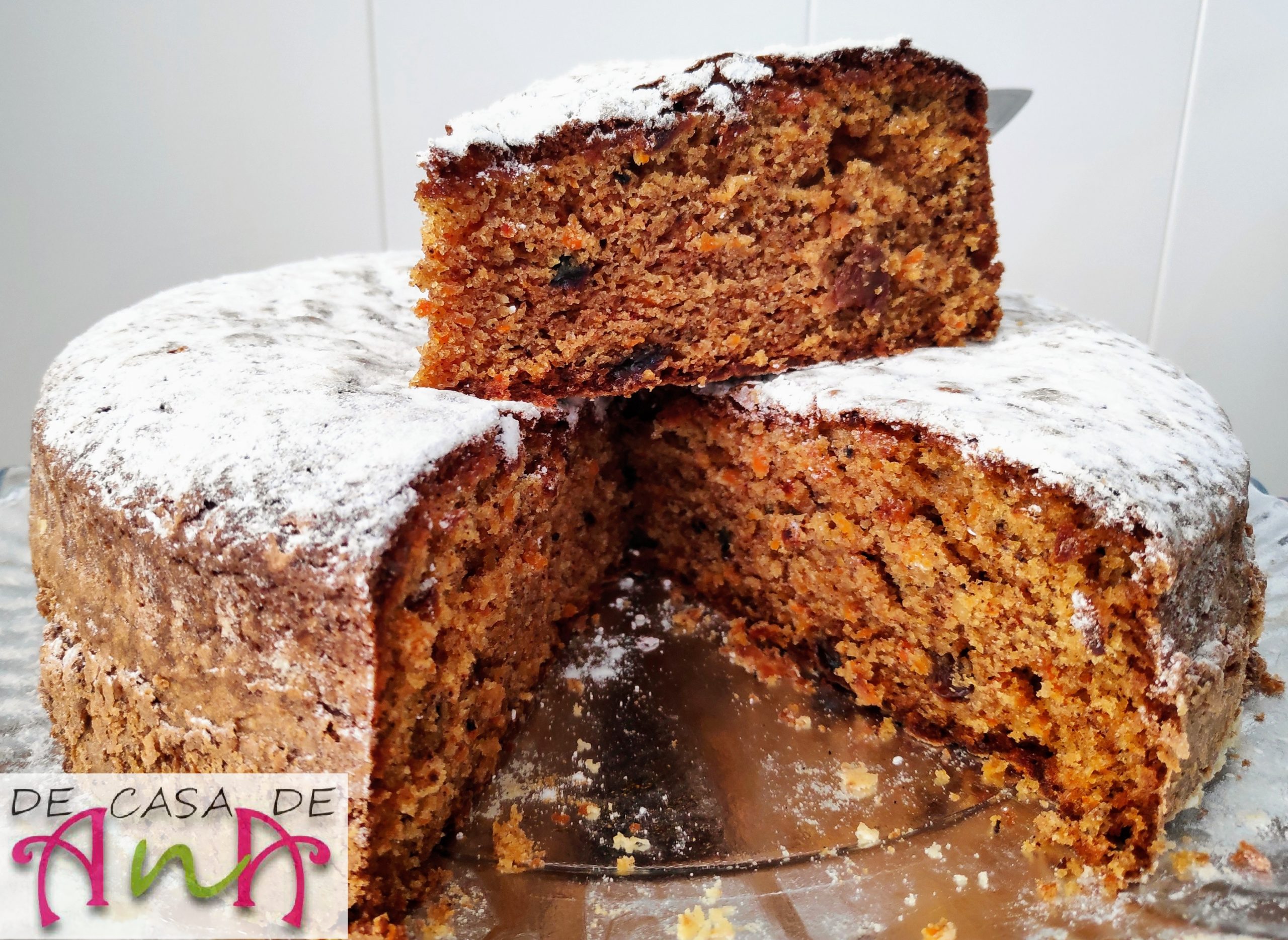 Ingredientes: harina, zanahoria, azúcar, huevo, pasas, nueces, canela